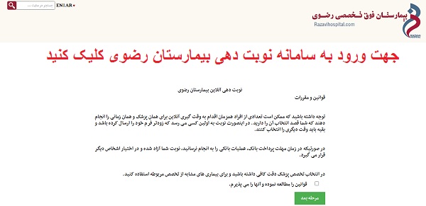 مراجعه کننده محترم قبل از ورود به سامانه نوبت دهی، موارد ذیل را به دقت مطالعه فرمایید: