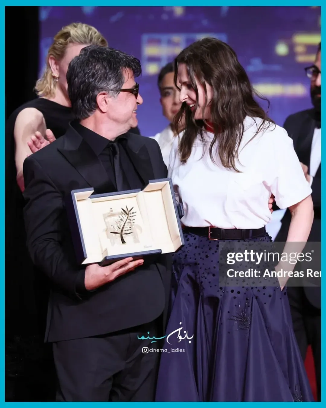جعفر پناهی کارگردان ایرانی، به خاطر فیلم «یک تصادف ساده»، جایزه نخل طلای جشنواره فیلم کن ۲۰۲۵ را دریافت کرد.این جایزه توسط هیئت داوران به ریاست ژولیت بینوش، به او اهدا شد. این دومین بار است که یک فیلم ایرانی نخل طلای کن را دریافت میکند، بار اول عباس کیارستمی با فیلم «طعم گیلاس» در سال ۱۹۹۷ این جایزه را به دست آورده بود.<تصاویری از لحظه دریافت جایزه نخل طلا جشنواره کن از دستان ژولیت بینوش و کیت بلانشت را مشاهده میکنید.