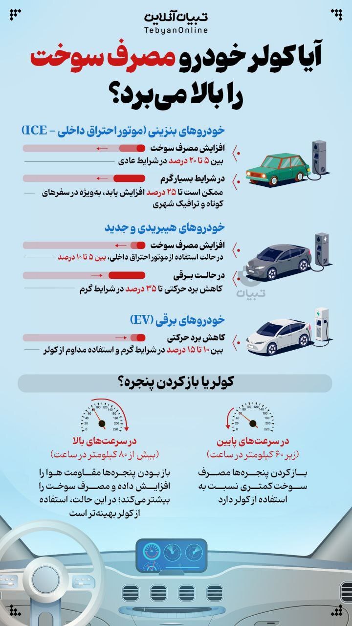 آیا کولر خودرو مصرف سوخت را بالا میبرد؟ + اینفوگرافی